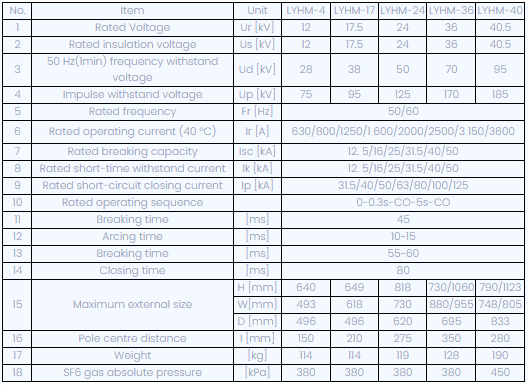 LYHM4 Mediumspänningsbrytare använder svavelhexafluorid (SF6) gas som bågsläckande och isolerande medium. SF6 -gas har smidiga brytningsegenskaper, och det kommer inte att finnas något avlyssningsfenomen när man bryter strömmen, och ingen driftsöverspänning kommer att inträffa. Denna utmärkta egenskap säkerställer att brytaren har en lång elektrisk livslängd. Och påverkan på utrustningen under drift, den dielektriska nivån och termisk stress kommer inte att påverkas.