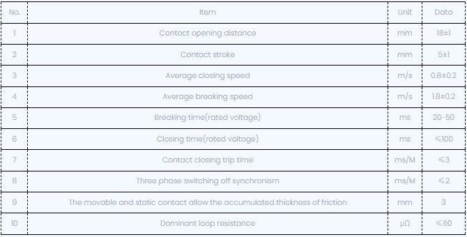 Efter justering av brytaren visas de mekaniska karakteristiska parametrarna nedan