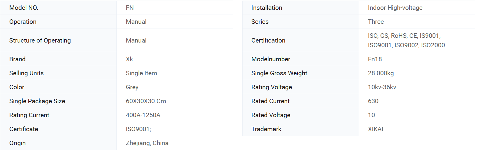 Standard FN18-omkopplaren innehåller en tung stålram med avstängande isolatorer, en unik båge av båge av puffer-typ, en driftsmekanism och strömbärande komponenter, inklusive avbrottstyp med gjutgångar och käkanslutningar.
