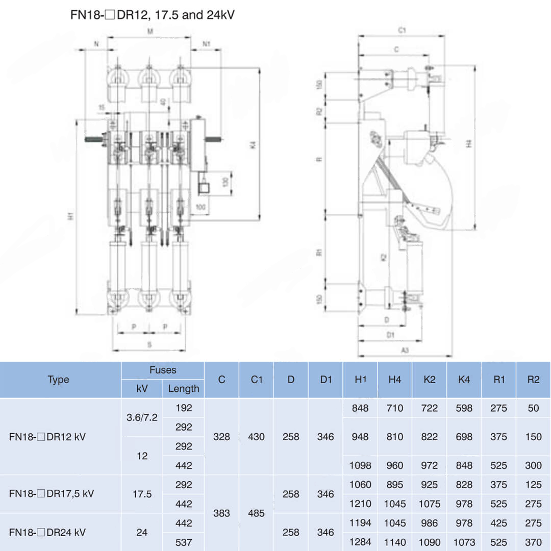 FN18 Lastomkopplare och kombinationer av belastningsomkopplare är högspänning, högpresterande belastningsomkopplare som kombinerar tryck-luftbågsläckning och gasproducerad bågsläckning. Kombinationen av lastomkopplare och säkring kombinerar fördelarna med lastomkopplaren med säkringen för att växla varje lastström upp till den nominella brytströmmen för lastomkopplaren och för att växla eventuella överströms upp till den nominella kortslutningsströmmen i kombinationen med hjälp av driften av säkringen och dess impinger.
