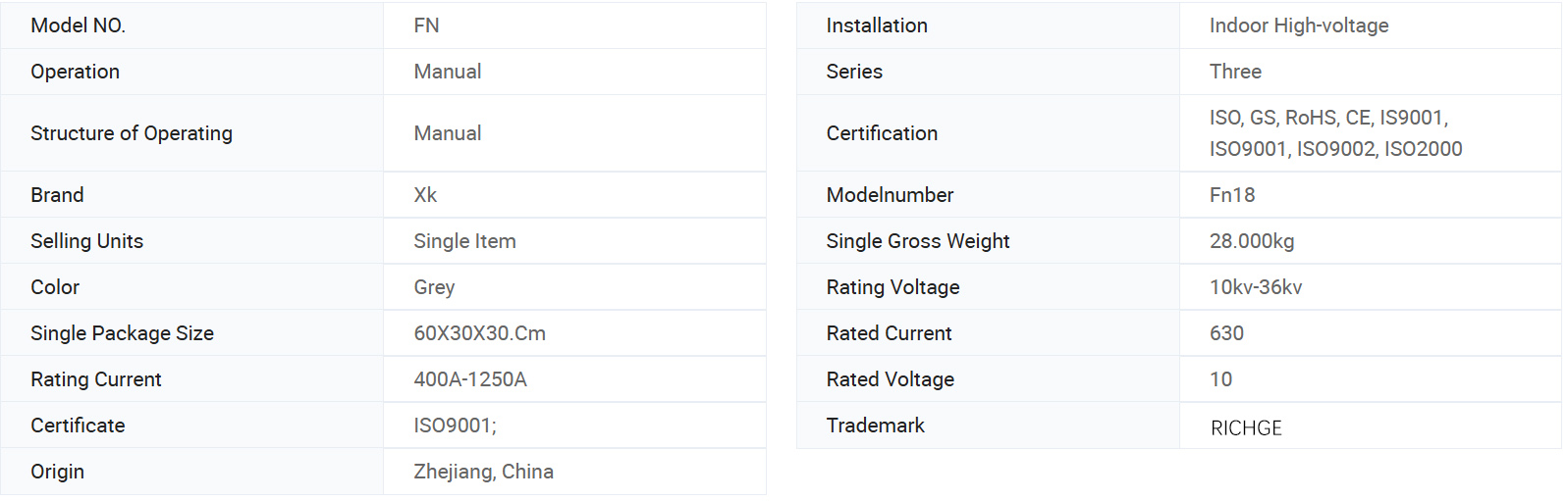 FN18 lastbrytare och lastbrytare-säkringskombinationer är högspännings, högpresterande lastbrytare som kombinerar tryckluftsbågsläckning och gasproducerad ljusbågssläckning. Kombinationen av belastningsomkopplare och säkring kombinerar fördelarna med belastningsbrytaren med säkringens fördelar för att växla eventuell belastningsström upp till märkströmbrytaren för belastningsströmbrytaren, och för att koppla eventuell överström upp till den märkta kortslutningsbrytströmmen för kombinationen med hjälp av säkringens funktion och dess stöt.