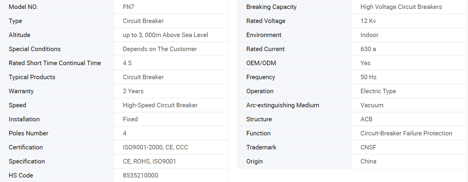 FN7-12 AC högspänningsbelastningsomkopplare är en ny typ av gasproducerande inomhushögspänningsbelastningsomkopplare. Den är lämplig för trefas AC-kraftsystem med AC 50Hz och nominell spänning på 12 kV. Det används för att bryta belastningsström och stänga kortslutningsström.