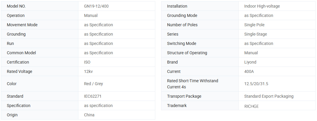 GN19-12(C) inomhus HV-frånskiljare gäller för kraftsystem med märkspänning 12kV, AC 50/60Hz. Den är utrustad med CS6-1 manuell manövreringsmekanism och används för att bryta och skapa krets utan belastning. Det finns ytterligare föroreningstyp, höghöjdstyp och effektindikerande typ. Den är gjord enligt IEC 62271-102.