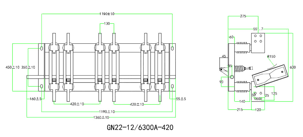 Denna serie av omkopplare drivs av CS6-2 manuell manövermekanism eller elektrisk manövermekanism, och kan installeras på vänster eller höger sida av frånskiljaren.