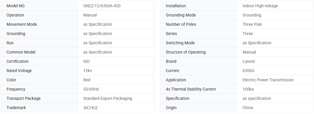 GN22-12 (C) (D) inomhus högspänningsfrånskiljare högspänningsställverk används i kraftsystem med märkspänning på 12kV, 50Hz och lägre, för att ansluta, koppla bort eller omvandla ledningar under spänning men utan belastning.