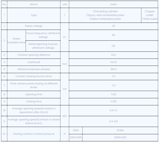 Huvudteknisk specifikation av VBI-24 Sidmonterad typ VCB