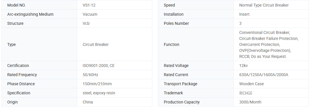 VS1 (Zn63A) -12indoor AC MV Vacum Circuit Breaker är en trefas AC 50Hz inomhusbrytare med en nominell spänning på 12kV kan den användas i industri- och gruvföretag, kraftverk och transformatorstationer för kontroll och skydd av elektriska misslyckanden. Andis lämplig för platser med fristående operationer.