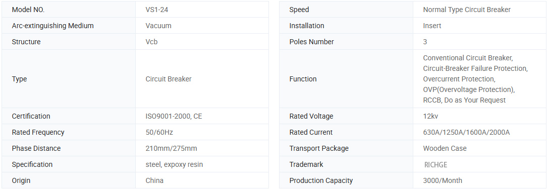 VS1-24-serie inomhus högspänningsvakuumbrytare med vanlig isolerad cylinder är tre-fras A.C. 50 Hz inomhuskraft distributionsutrustning med den nominella spänningen på 24 kV. Det är som används för att skydda kontrollen av elektrisk utrustning inom områdena industri och gruvföretag, kraftverk och transformatorstation. Denna TYP-vakuumkretsbrytare överensstämmer med nationella standarder och bestämmelsen av IEC-standarden når kapaciteten av M2-E2-C2.