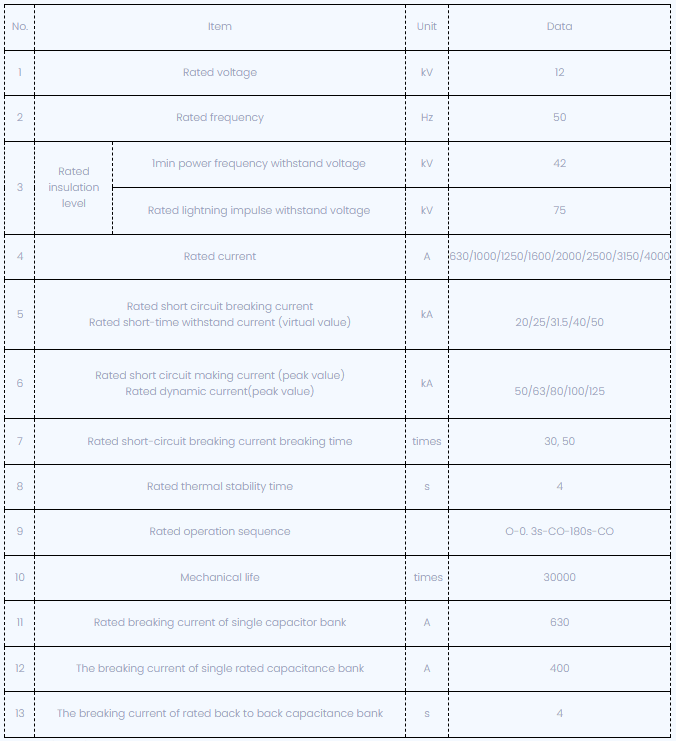 VSG-12 Handcart Typ Vakuumbrytare Teknisk parameter