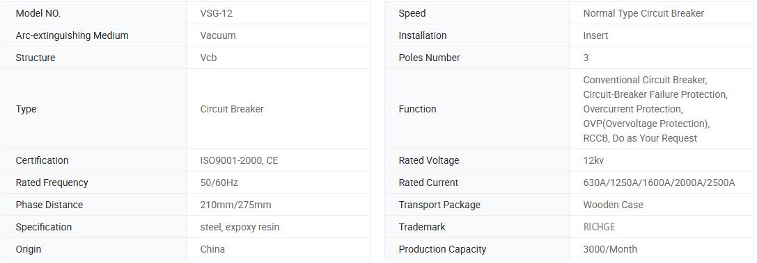 VSG-12 Typ inomhus högspänningsvakuumkretsbrytare använde våren för att lagra energi. The operating mechanism can be operated by two ways, by manual and electromotive operation, The characteristics is according with GB1984-2003 High Voltage AC Circuit Breaker, JB3855-1996 3.6-4.5KV Indoor AC High Voltage AC Circuit Breaker and IEC standard 62271-100:200162271-100:2001 High Voltage AC Circuit Breaker