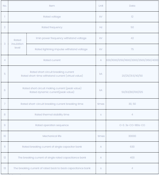 VSG-12 2000A Vakuumbrytare Tekniska parametrar