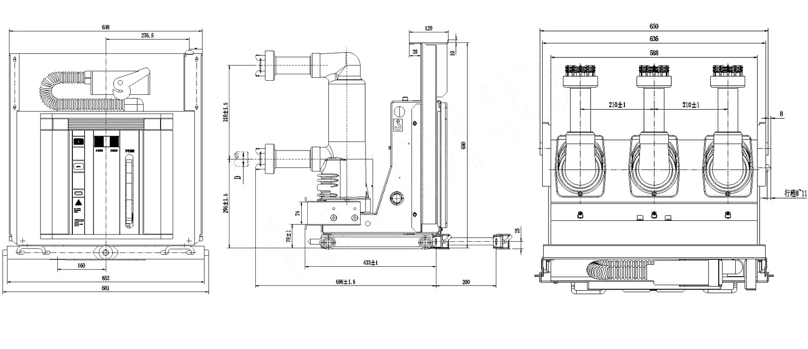 Mått på VSG-12/2000A Handcart Type Vakuumkretsbrytare med fast pol