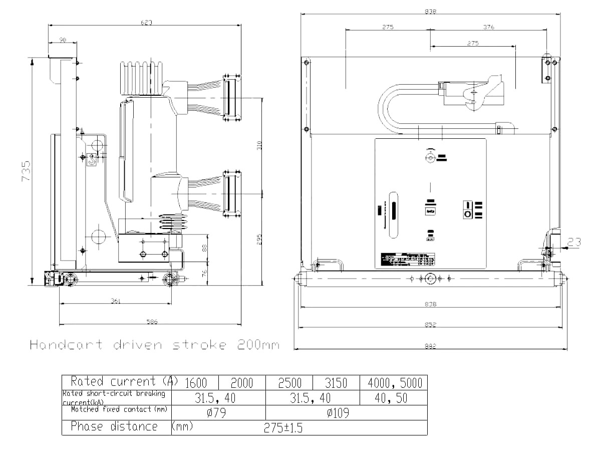 · Utdragningstyp: Vakuumbrytaren antar en utdragningsstruktur, vilket gör installation, underhåll och inspektion mer bekväm. Denna design ger användare flexibilitet att ta bort eller byta ut brytaren utan att störa hela systemet.